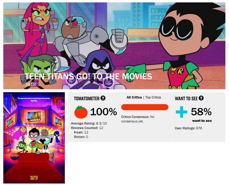 DC動漫電影《少年悍將 GO!》近期即將在美國7/31日上映,而近日《少年悍將 GO!》爛番茄成績開出紅盤,本作畫法以萌系畫風呈現,更大的特點是它著重在喜劇效果上,沒有前作的黑暗、嚴肅氣氛,劇中多圍繞在少年悍將們沒有大人陪同、拯救世界的閒暇之餘的平時生活。雖然目前只有12篇影評但大家都表示好評程度100%,12篇都給予正面評價 ,輕鬆詼諧甚至接近白爛的風格非常適合在憂鬱的藍色星期一觀賞。