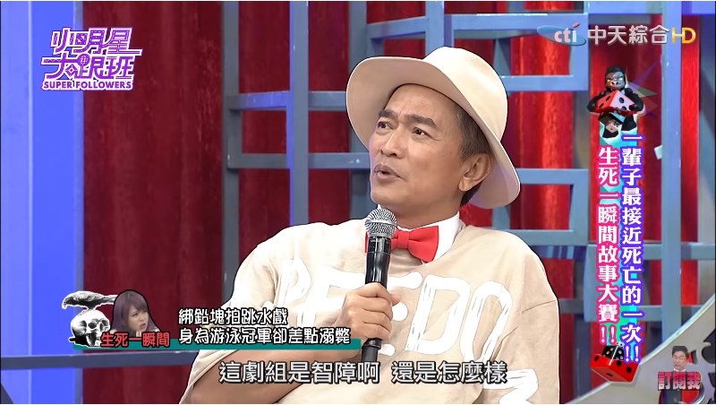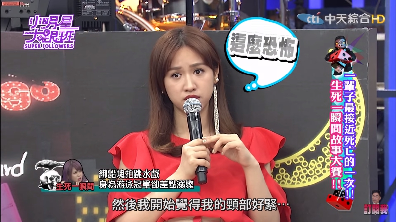 女藝人「小小瑜」近日受邀上綜藝節目「小明星大跟班」,分享自己12年前拍戲遇到的意外,當年拍的是一場跳水逃生的戲,由於小小瑜是拿過全大運冠軍的游泳好手,劇組認為不需要請救生員,沒想到出事的卻是她。綁著20公斤的鉛塊下水拍戲,結束了才發現浮不上水面,也沒有人來救她,瀕死一瞬間的經歷嚇壞現場觀眾,主持人吳宗憲也忍不住怒罵:「這劇組是智障嗎」