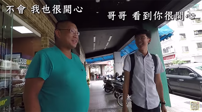 Dukk因為一直以來都是光頭哥哥的粉絲,這次從台南特地去拜訪對方,只見光頭哥哥看見他們非常開心,一行人一同去吃哥哥過去在影片中提到的涼麵,在過程中Dukk也提議哥哥:「哥哥我覺得你應該要站出來,每天都斗內你、訂閱你」,光頭哥哥則回應:「生活還是要過,但錢夠用就好」表示自己並不想賺粉絲的錢。