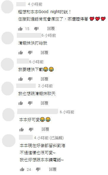 影片發布之後,網友也紛紛留言:「好想跟清蝦妹聊天哦!」、「超想和本本Good night的説! 但接到通話肯定會瘋狂了,哪還睡得著」、「清蝦妹快打給我」、「我要趕快下載」、「我也想跟清蝦妹聊天」、「本本好可愛」、「我也好想跟清蝦妹講電話」。
