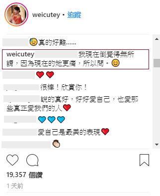 趙筱薇也在文末打上:「那個誰傷了誰已經不重要了」態度坦然。不過話雖如此,在留言處她卻回覆網友:「我現在倒覺得無所謂,因為現在的她更痛,所以問。」,意有所指的言論讓網友猝不及防,也讓外界各自解讀。