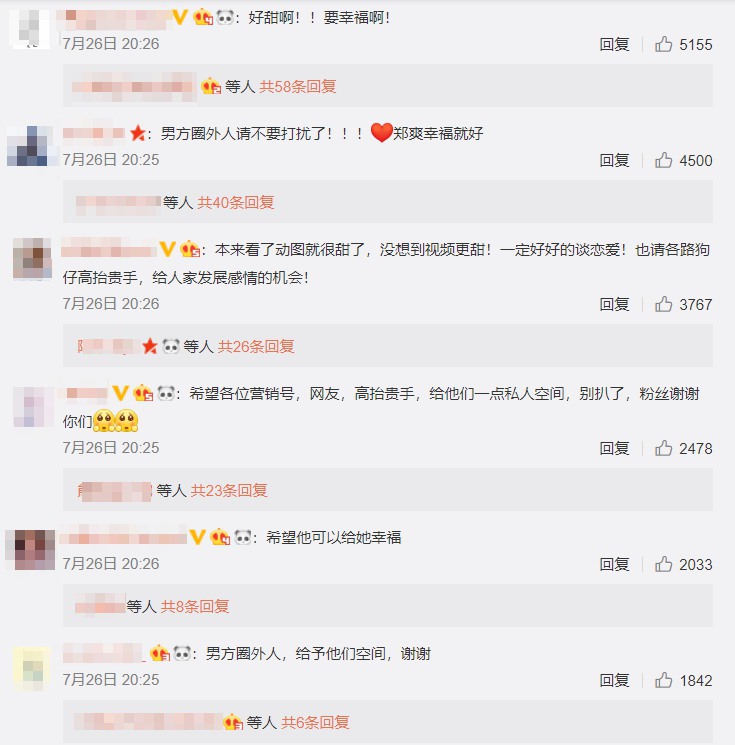 消息傳出來後,許多網友紛紛對鄭爽的新戀情表示祝福,很多人都希望鄭爽這次能夠得到真正的幸福,同時也希望媒體多給兩方一些私人空間。
