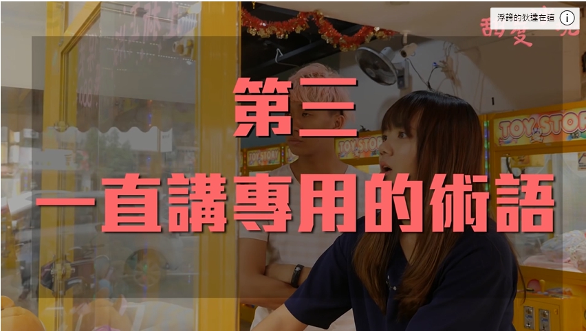 除此之外,夾娃娃成癮者因為太常常夾,已經研發出一套「專業術語」,如「倒爪」、「甩爪」、「二收」等等,令不懂著些名詞的西西歪聽的霧煞煞。要是遇到娃娃「卡洞」,則絕對要不擇手段的想辦法將它弄出來,搖機器、將手伸進去抓,不達成目的絕不罷休。