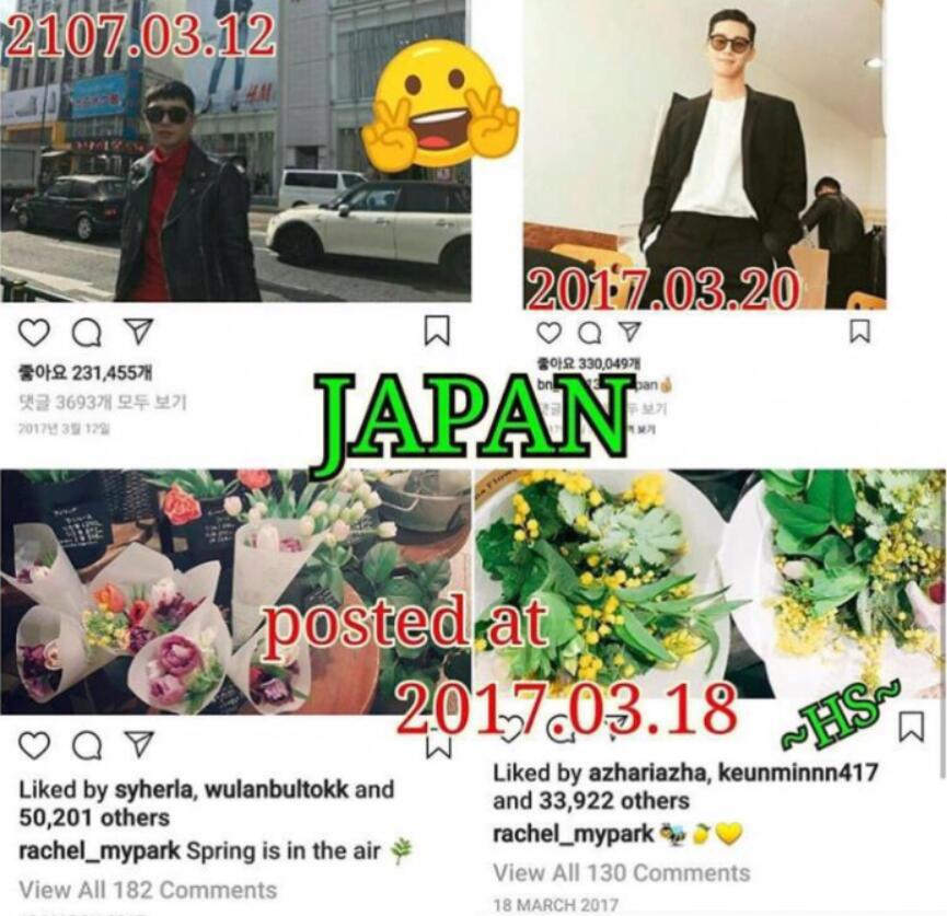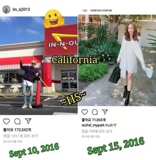 網路上蒐集出來「秘密約會證據」:從2016年9月加州、12月的香港,隔年17年3月日本,兩個人的地點與時間點幾乎都是相同的,今年3月及5月更被拍到疑似戴著「情侶手環」,朴敏英曾戴過的帽子與鞋子也曾出現在朴敘俊家中,此現象相當令人起疑。