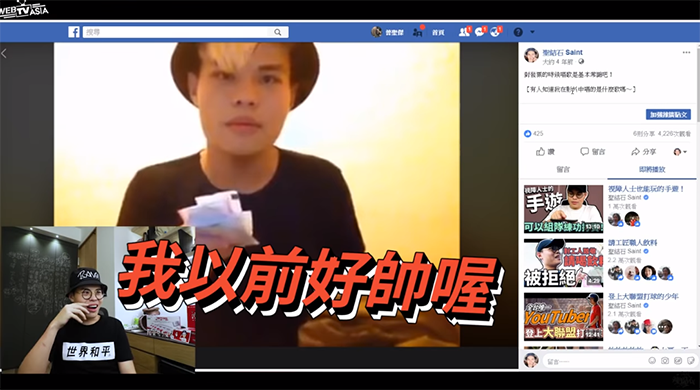不過有趣的是,其中一支影片他假裝女朋友在偷拍自己,一手拿著鏡頭,另外一隻手則一直擋鏡頭假裝被偷拍,最後鏡子漏餡被抓包,他也自嘲:「原來是假裝有女朋友在拍的部分」。而他另一支邊對發票邊唱歌的影片,也讓現在的他驚呼自己以前怎麼那麼帥,更搞笑表示:「這幾年是發生什麼是嗎?」