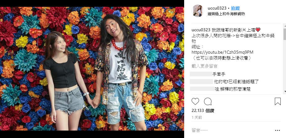 瑀熙近日發布新影片,影片中她和瑋哥在台中約會。只見影片中瑋哥剛開始不小心遲到,接著便放大絕表示:「我在你的人生中是不會遲到的」,讓瑀熙心花怒放,他們也一起在餐廳的花牆甜蜜拍照,兩人不僅甜蜜手拉手,擺出經典的壓頭pose。