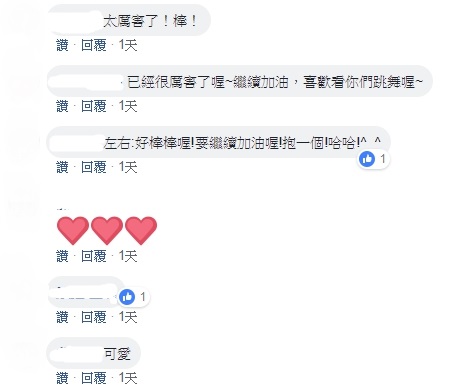 自我要求甚高的左左右右在臉書上寫下「這首歌有點難…所以表情和整齊度還要加強!」但只花了1.5小時就能有這麼棒的表現,已經讓許多粉絲驚嘆:「已經很厲害了喔」、「跳舞難度越來越高了」、「氣場超強!」更有許多網友發現左左右右長的好高了,越來越有女團風範 !
