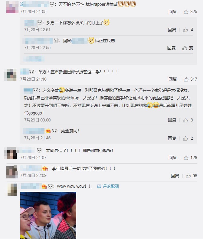 尤其是李佳隆做為新生代的rapper,創作歌曲的能力非常讓人刮目相看,李佳隆這次比賽的表現真的讓人想到初生牛犢不怕虎,遇到強勁對手艾熱但毫不畏懼,雖然有小失誤趕拍,也得到了所有導師的認可,正如潘瑋柏所說,這一輪被淘汰太可惜了。節目中一直以來都要求嚴苛的吳亦凡也力保他,可見他的潛力和音樂的先鋒性值得肯定。張震嶽更要求選手給他們一點時間做討論,熱狗也說他們可以回到後台休息,畢竟需要花點時間,看得出來製作人團隊都相當苦惱,這麼優秀的兩人要怎麼從中做抉擇。