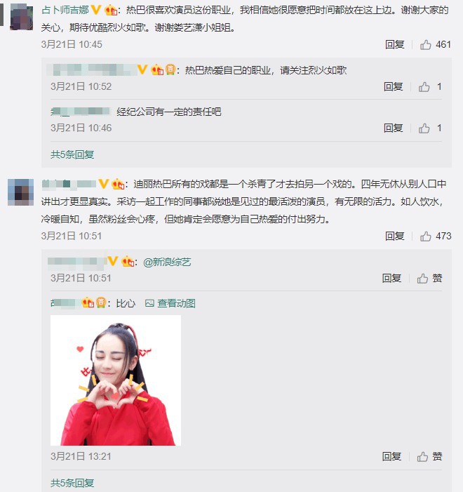 許多網友看到此言論之後,也跟著佩服迪麗熱巴,想必迪麗熱巴現在擁有這麼高的人氣還有好作品肯定都是她四年以來的努力後出來的成果,但同時也有很多人粉絲心疼,但相信迪麗熱巴會有她自己的考量和打算,就讓我們繼續支持她的理念吧!