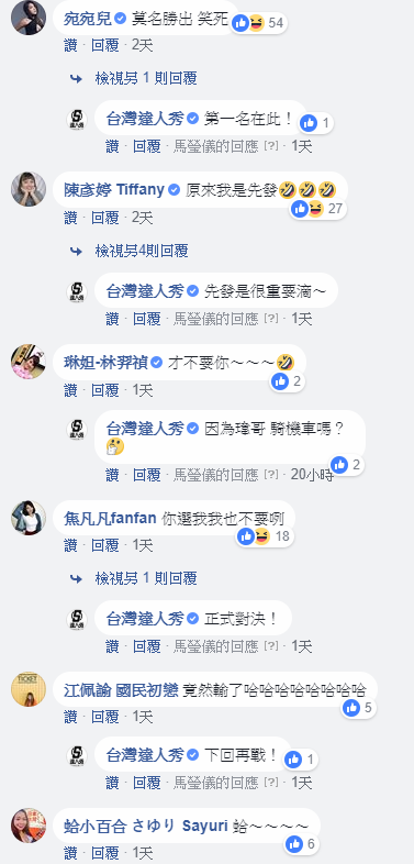 瑋哥這段影片也吸引許多網紅來回應,同為反骨團員的琳妲就笑回:「才不要你~~~」,凡凡也回覆:「你選我我也不要咧」,全力嫌棄瑋哥XD 而冠軍宛宛兒也回應:「莫名勝出 笑死」,彥婷也笑說:「原來我是先發」。