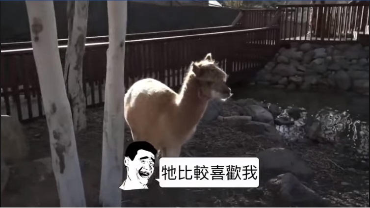 影片中兩人偶然發現了一隻草泥馬,當古娃娃還在慢慢的對牠示好、刷好感度以便接近時,藏鏡喵卻不知道哪裡來的自信,立刻斷言「牠比較喜歡我啦」就一馬當先的直接接近,還試圖摸草泥馬的頭,結果立刻被打臉,草泥馬突然暴起怒噴了藏鏡喵一臉口水,嚇得他慌忙撤退,離草泥馬好幾公尺遠,戲劇化的搞笑場面惹得古娃娃瘋狂大笑,停不下來。更慘的是由於藏鏡喵手裡拿的攝影機,自己將「打臉全過程」清清楚楚的錄了下來,想抵賴也沒門。