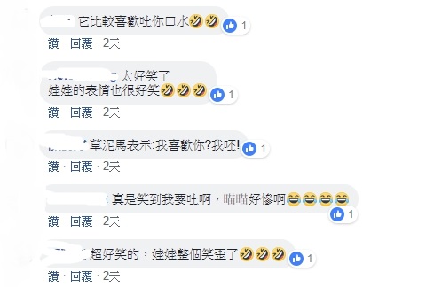 網友們看完影片也集體笑噴,一點也不同情慘遭口水掃射的藏鏡喵,紛紛留言說「它比較喜歡吐你口水」、「 草泥馬表示 : 我喜歡你 ? 我呸 ! 」、「超好笑的,娃娃整個笑歪了」