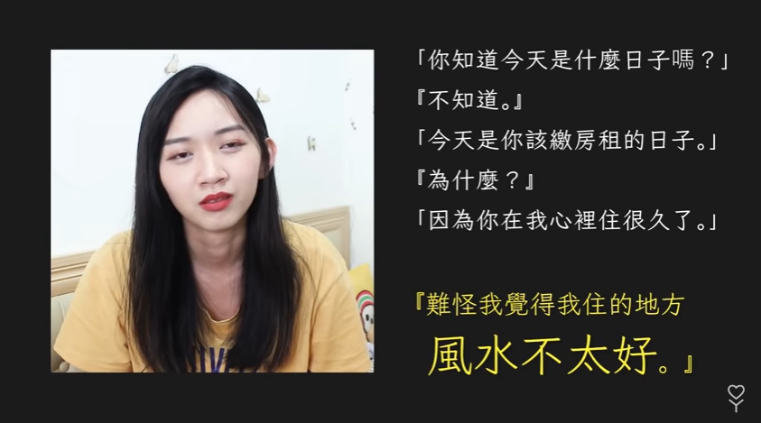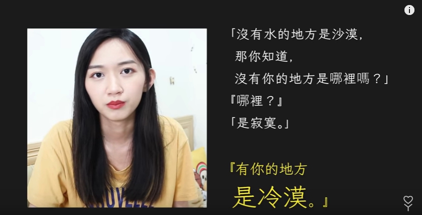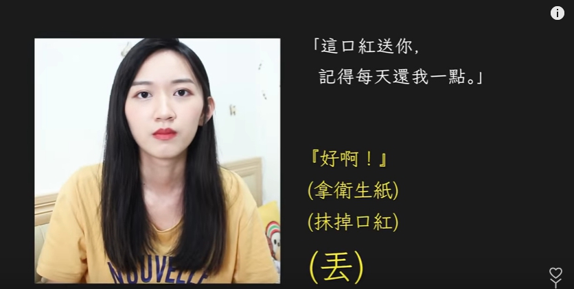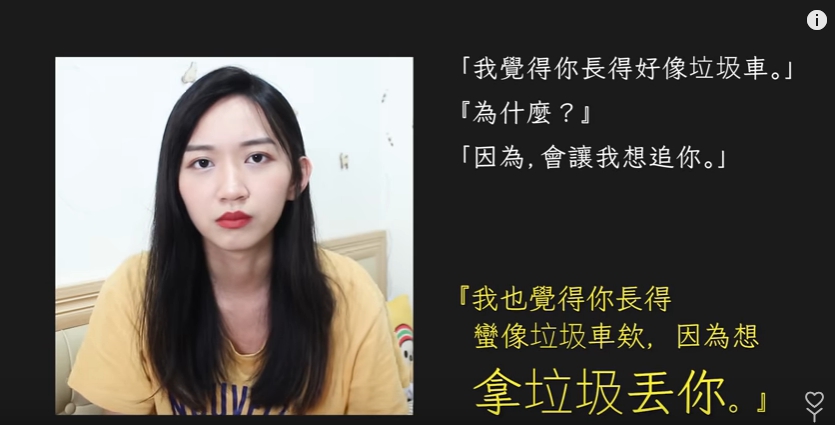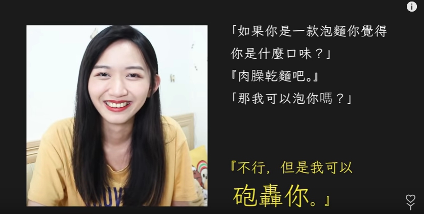 YouTuber「阿心」時常在頻道上分享生活點滴,近日她透露,不解為何網路上瀰漫一股「撩妹語錄」的風潮,阿心完全沒有心動的感覺,於是她自創一個「拒絕被撩語錄集」,阿心還笑說「我們女生沒那麼容易被追走,好嗎!」
