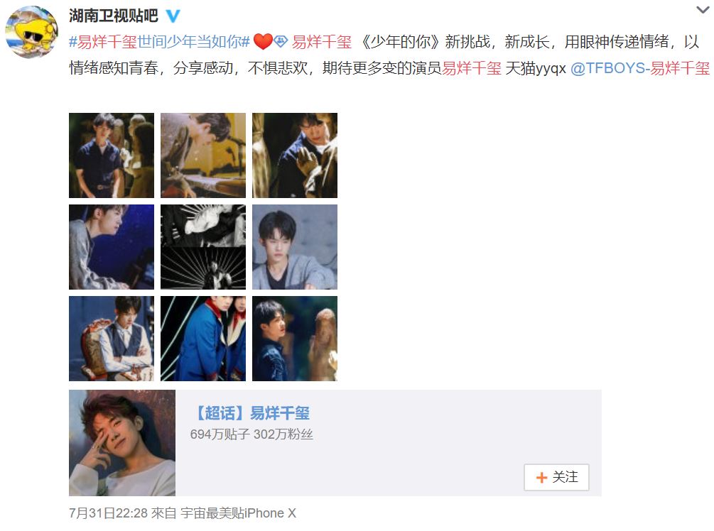 中國人氣男團「加油男孩TFboys」團員易烊千璽近日和金馬影后周冬雨聯合演出電影「少年的你」,此片更是由「七月與安生」原班人馬參與拍攝。年僅18歲的易烊千璽是廣大網民心中的「寵兒」,7月23日「少年的你」微博官網首度釋出電影海報,易烊千璽的平頭造型脫離以往稚氣,近日,網傳他不同於海報紮起馬尾的造型,網友直呼「真社會大哥」!