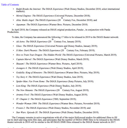 但是有一種可能是依照北美上映日期而列,因為列在3月的《馴龍高手3》非北美地區包括台灣早在1、2月便上映,而且《復仇者聯盟3》列在北美上映的5月,而非台灣上映的4月,並不是依照全球最早上映日期而定,若以此推測似乎就是北美上映日期,外媒仍不敢保證北美是否提前上映,而台灣目前則是尚未公布檔期。
