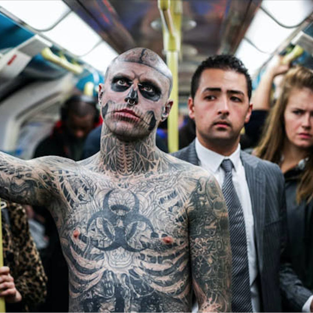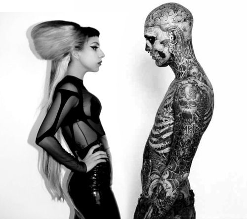 如果你是美國流行樂壇天后女神卡卡(Lady Gaga)的歌迷,你肯定會對照片中這位「殭屍男孩」Rick Genest 記憶猶新。1985 年出生的 Rick Genest 來自加拿大,因為沒有固定工作而對自己的未來感到惶恐、沒有自信且覺得自己一無是處。不過在 Rick Genest 開始用大面積的紋身將自己的皮膚變成活生生的藝術之後,Rick Genest 不僅成為了備受世人矚目的時尚模特兒,在 2011 年他更與女神卡卡合作拍攝了〈Born This Way〉MV,藉由這首火紅的暢銷單曲走紅於全球。