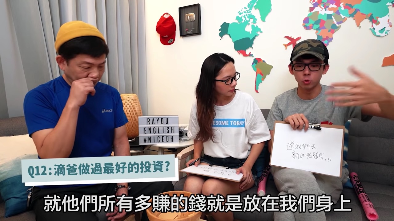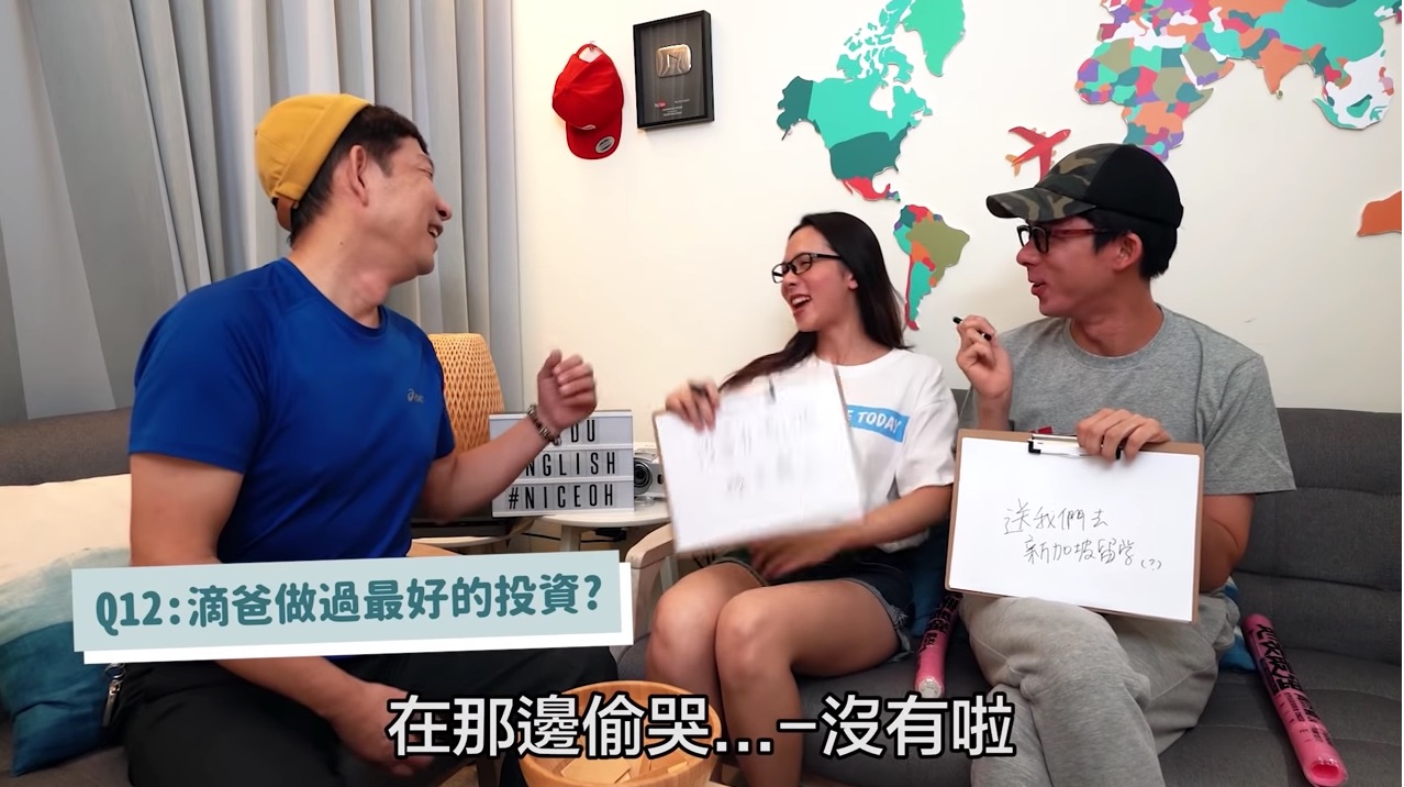 在最近慶祝父親節的影片之中,阿滴與滴妹邀請了滴爸來出題,進行快問快答關於滴爸的事情,之後也問到滴爸這輩子做過最好的投資是什麼,兩兄妹都回答了是栽培他們的教育,滴爸也感性的說平常做投資也沒賺到什麼錢,但投資兩位兒女看到他們有現在的成就覺得很驕傲,也讓滴妹不禁感動得落淚,感謝爸爸的付出,阿滴也在Instagram的限時動態詢問滴妹為什麼要哭,滴妹直言是因為太感動的關係。