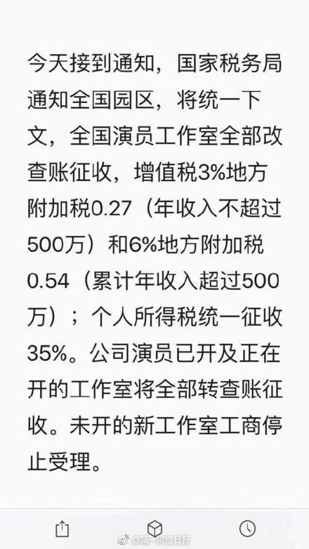 此外,據陸媒報導,藝人除應用「陰陽合同」逃漏稅,更企圖以成立「個人工作室」等花招逃漏稅。為此,8月1日,中國稅務總局宣布更改稅制,從原先的「核定徵收」改為「查帳徵收」,根據官方宣布的兩大聲明,第一,各工作室需補繳上半年稅金;第二,配合稅收新制,稅收比率將從6.7%,飆升至42%。
