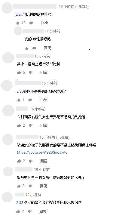不過特別的是,這個空氣瀏海正妹一雙水靈大眼加上臥蠶相當有記憶點,也讓許多眼尖的網友一眼認出她曾經上過黑男的《街頭邱比特》,紛紛留言:「邱比特的臥蠶美女」、「難怪很眼熟」、「其中一個有上過街頭邱比特」、「那個不是黑男配對過的嗎?」、「影片中其中一個女生不是街頭配對的人嗎?」。