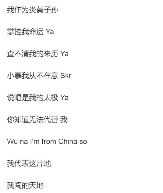 影片中可看到,演唱過程排場相當浩大,將中西元素完整融合,不僅請來傳統樂器中國鼓、琵琶、古箏和鑼伴奏,還有京劇演員空降撐場。演唱完畢後,吳亦凡在舞台上表示:「致敬所有堅持中國說唱的歌手」、「和平與愛」並在歡呼聲中下台。
