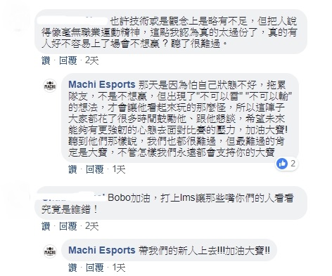 M17 本周將 BoBo 移出登錄名單,網友們反應兩極,有人認為「Bobo 是不是心裡已經受到影響了啊。」、「被賽評嘴到失業…」,也有人覺得:「本來就是讓打得好的上,難不成是人情戰隊嗎?」、「如果打不好被移出也是很正常的吧。」隨後戰隊在臉書澄清BoBo只是暫時調到二隊,因為新人急需有經驗的選手,對於之前的爭議事件,戰隊回應「BoBo是太怕雷到隊友才玩得有點怪」並仍對BoBo未來發展深具信心。