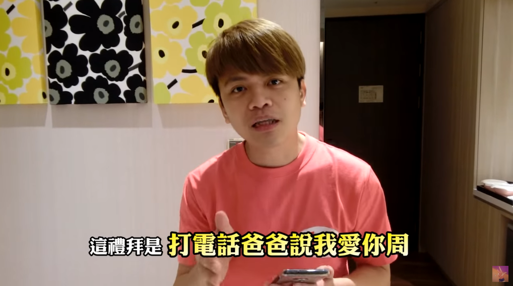 「七月半」是HowHow和蔡阿嘎、馬叔叔、阿傑、蔡哥等人組成全新樂團,他們時常在頻道「七月半SevenFat」以同個主軸輪班發布影片。因為這禮拜正值父親節,星期一的值日生阿傑便在影片中發布任務,讓每個人打電話給自己的爸爸說「我愛你」。作為週四的值日生,阿嘎則無奈表示:「大家知道,我小時候,爸爸就不在了,怎麼拍」。