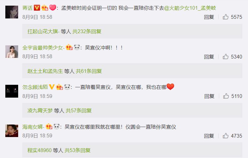 針對三人可能再度回歸團隊,粉絲們紛紛支持表示,「吳宣儀在哪我就在哪」、「永遠陪著孟美岐」、「一直支持紫寧」。