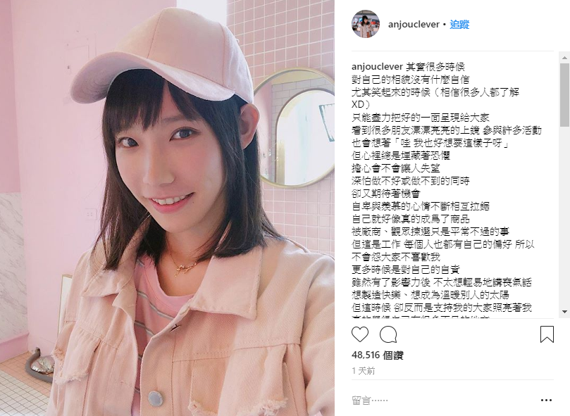 成爲商品被廠商觀眾揀選!「安啾」IG自曝自卑情結:對自己的相貌沒自信