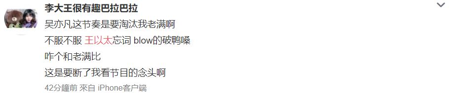 不過,三組導師還是將優勝投給了那吾克熱和Al Rocco,而王以太、舒滿克和Blow fever被迫陷入淘汰局面。雖然結果尚未出爐,但不少大陸網友觀察其他選手反應和吳亦凡嘴型推測,被淘汰的可能是滿舒克。