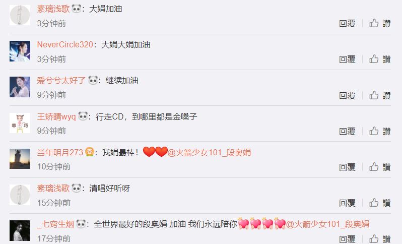 9日,因經紀合約問題驚傳退出「火箭少女」的孟美岐、吳宣儀和張紫寧,使得剛成團2個多月的火箭少女面臨拆夥危機,引起粉絲恐慌。素以好歌喉為人所知的段奧娟,獨自出席電影《快把我哥帶走》發布會,令她坦承「很恐慌」,惹得台下粉絲相當心疼,並大喊「不要緊張,我們陪你」。