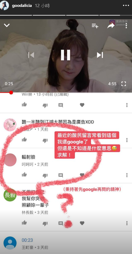 愛莉莎莎時常在頻道「愛莉莎莎 Alisasa」分享感情系列影片,獲得廣大迴響,不過她過去也曾直言自己的酸民很多,更曾經特地開箱論壇「巴哈姆特」上的酸民留言,超正面的心態也獲得粉絲大讚!不過近日愛莉莎莎遭酸輻射臉卻看不懂,還特地po出來詢問大家。