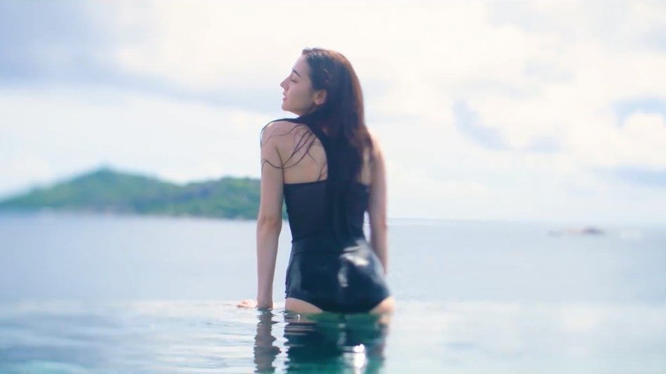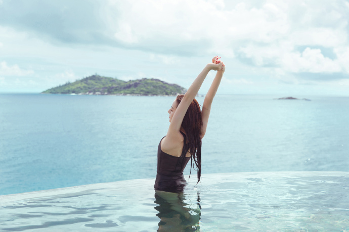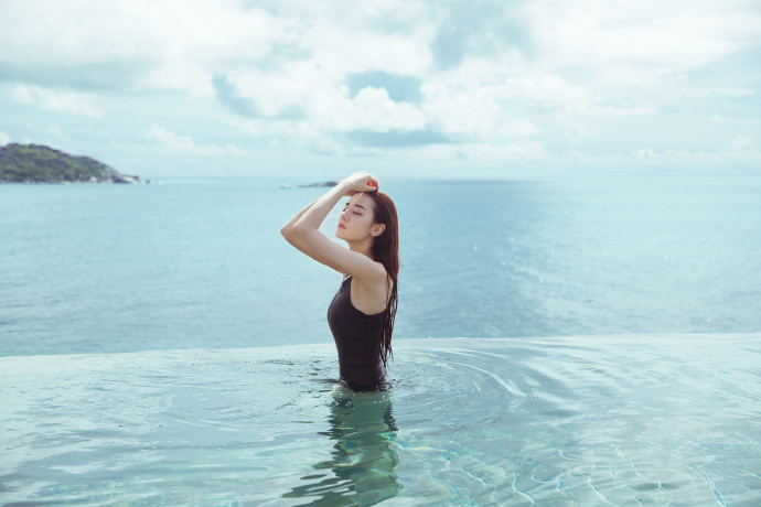 照片中,背景的泳池已經和遠方大海連成一線,迪麗熱巴穿著連身泳裝並浸泡在泳池中,她的皮膚白皙,濕透的長髮自然垂落在身上,更凸顯她的纖細腰線和曼妙身材,迪麗熱巴不管回眸或撩髮,都讓大批網友看得相當陶醉,並直呼「醉在熱巴的眼眸裡」、「美到了天際」、「不夠看阿晚上要睡不著了」。