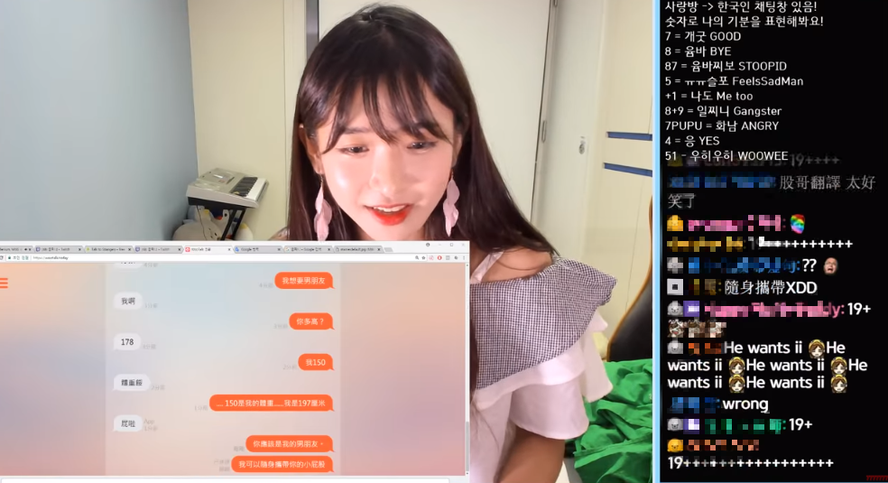 企鵝妹是韓國人氣直播主,過去因為曾經穿上企鵝造型跳舞,可愛的模樣擄獲大批粉絲,不過特別的是她的粉絲粉絲幾乎一半都是台灣人,雖然曾經在台灣見面會上惹出爭議,人氣依然居高不下!近日企鵝妹用台灣隨機聊天的軟體「wootalk」和台灣網友聊天,因為使用google翻譯,也讓話題越來越歪,網友也驚呼:「19+」。