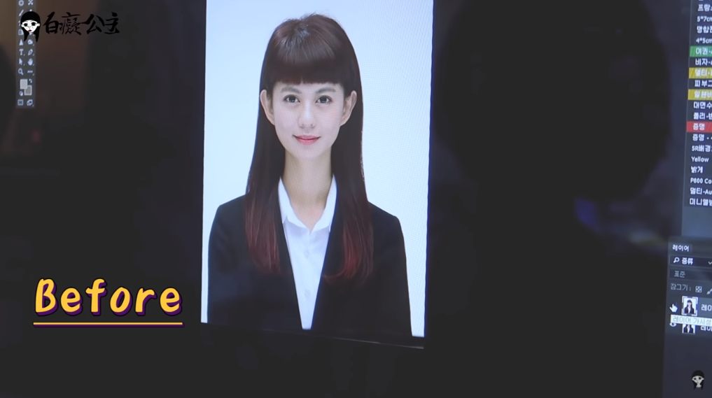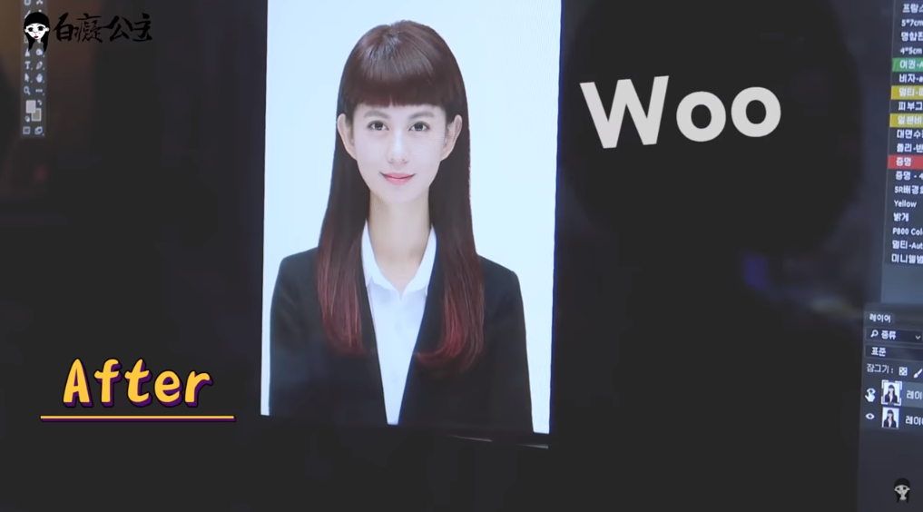拍攝完畢之後痴痴則表示「臉部表情還是有點僵」不過因為可以靠修圖所以沒關係!在修圖的時候,痴痴也說明客人可以在旁邊「盯修」,只見修好之後,痴痴明顯變白,肌膚也變得更光滑,她更滿意地說:「真的好正喔!怎麼有點氣質啊?」、「修出來根本就朴信惠啊」。