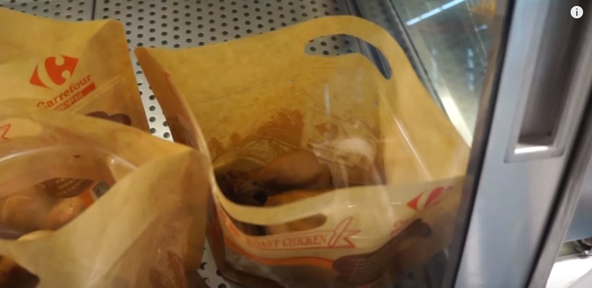 解婕翎買到家樂福的烤雞之後,表示它與好市多的烤雞不太一樣,「Costco的烤雞有很多很多的汁在下面,可以一邊扒肉一邊沾烤雞油汁來吃」,相較之下,家樂福的烤雞比較乾,且雞皮的顏色沒有那麼深,解婕翎接著說,烤雞的精華就是在於皮要酥酥脆脆的。