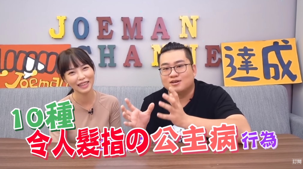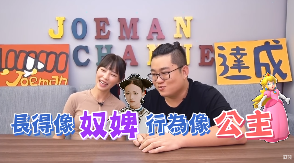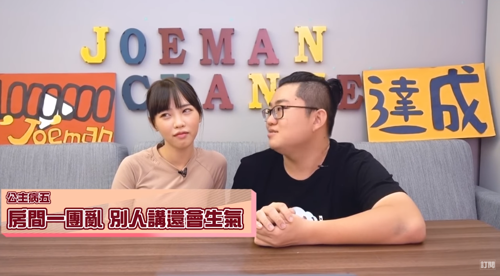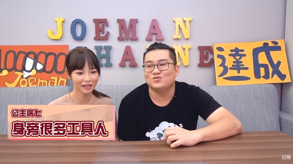 Joeman和咪妃最近剛剛認愛,就合作拍攝新影片盤點女生可能會有的十大公主病。不過給人印象自然不做作的咪妃卻被九妹大爆料「很多工具人」、「愛遲到」等等公主症狀,讓粉絲十分意外,而九妹的爆料也讓咪妃幾乎要翻臉!
