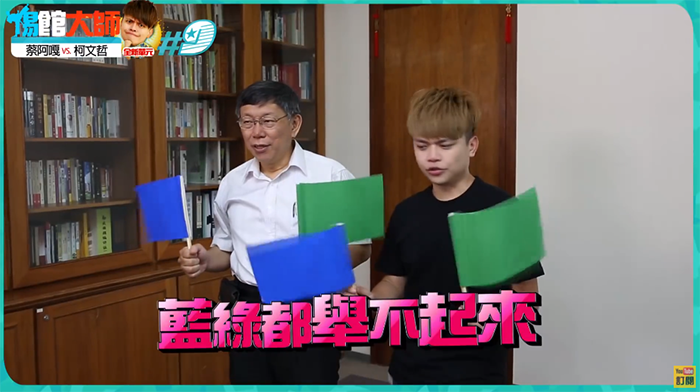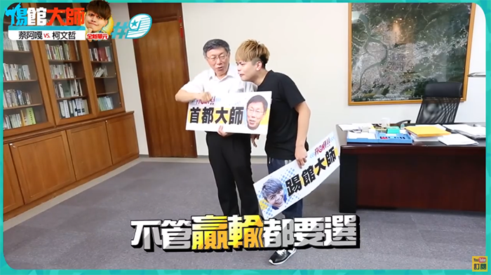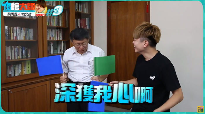 不僅如此,兩人在比拚「反應力」時,阿嘎也宣布遊戲名稱叫做「藍綠都舉不起來」柯P則笑說:「深獲我心」相當幽默。最後兩人PK結束,柯文哲以2:1成功贏過蔡阿嘎,阿嘎也認輸表示:「你就是我蔡阿嘎認證的首都大師」!