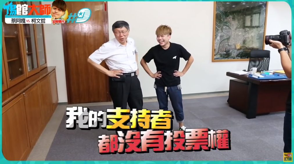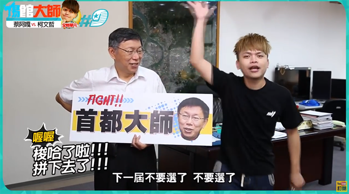 資深youtuber蔡阿嘎因為親民的作風深受粉絲喜愛,至今已經出道十年的他,也在今年七月喜獲麟兒,獲得廣大網友的祝福。三個月後選舉將至,昨(16)日阿嘎也上架新影片,影片中他更大膽踢館台北市長柯文哲,烙下狠話表示要柯P「輸了就退選」!