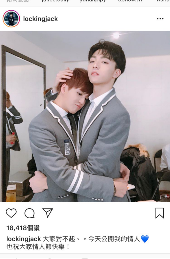 今天為農曆的七夕情人節,有許多的情侶慶祝節日,而參加《偶像練習生》笑眼男孩「陳立農」情人節遭公開戀情!?還被曬出了兩人的親密照片!原來公布與陳立農戀情的是一起參加《偶像練習生》、交情超好的練習生的許凱皓,而許凱皓更在Instergram上直截了當的說:「大家對不起。。今天公開我的情人,也祝大家情人節快樂!」還附上了愛心。只見照片中,陳立農霸氣將許凱皓緊緊摟在懷裡,而許凱皓嘟著嘴露出嬌羞的表情,讓陳立農的粉絲崩潰大喊:「再見!」