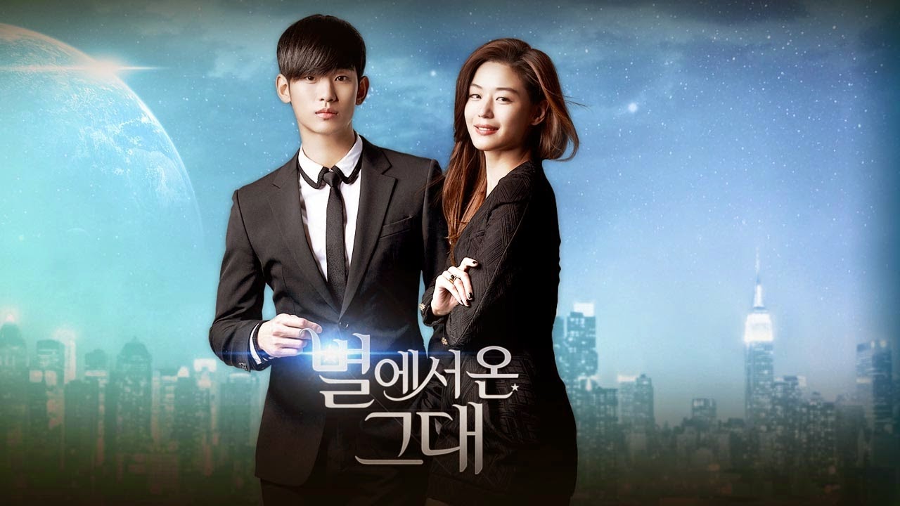 在《來自星星的你》中,金秀賢飾演來自外太空的都敏俊,全智賢則飾演女明星千頌伊,故事內容主要描述兩人浪漫的愛情喜劇。