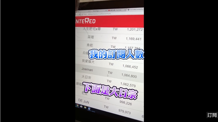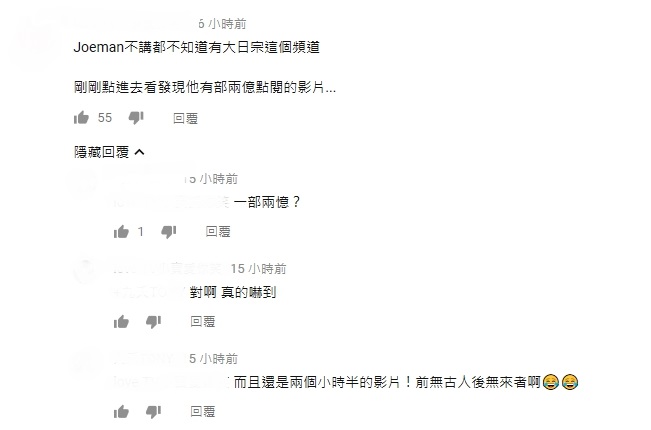 「Joeman 」終超越「宋七力」神級頻道! 網驚嘆:這支2.5hr的影片有兩億點閱?