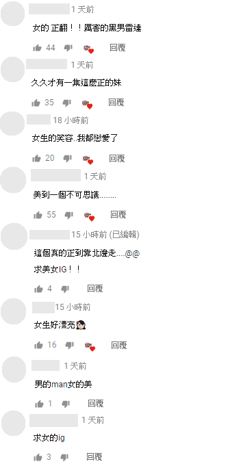 影片發布之後,網友也紛紛驚豔表示:「氣氛超好 !」、「女生很美麗大方」、「這女生氣質太好了,美麗」、「女的 正翻!」、「真的很漂亮」、「久久才有一集這麼正的妹」、「女生的笑容..我都戀愛了」、「女生笑起來有一點點像sana」、「美到一個不可思議 」、「求美女IG 」。