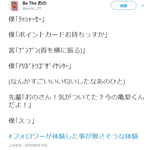 如果不問,你可能都不知道周遭的人其實發生過不少令人驚訝的事情,在最近日本推特就流行起一個 Tag「#フォロワーが体験した事が無さそうな体験」,就是讓所有網友來分享自己曾經經歷過 follower 可能沒有體驗過的事情,沒想到一個個網友比上一個人的經驗都更精彩!