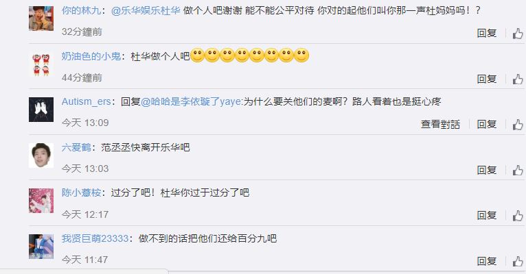 面對樂華公司始終沒有重視范丞丞,有網友分析是想壓制范丞丞和Justin的高人氣。事實上,樂華七子和NINEPERCENT中范丞丞、Justin和朱正廷三人都以兩團並行演藝活動,更是團體中人氣很高的人物,對此,粉絲紛紛表態「就讓兩人回NINE PERCENT吧」,更有網友指出朱正廷也曾遭到樂華娛樂冷處理過。