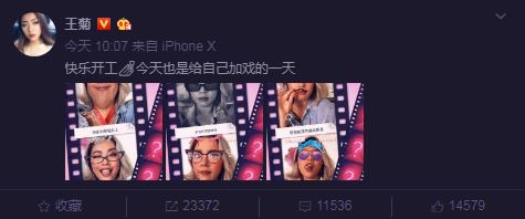 23日王菊發布了一組搞怪自拍照,並配文到「開工快樂,今天也是給自己『加戲』的一天」。照片中,王菊用了特殊濾鏡自拍,玩起了角色扮演像是忌妒的鄰家女孩、歌劇院裡的嘻哈明星等等,讓自己原本的臉龐掛上了翹鬍子,有時還變形出大下巴,皺眉、舔舌樣樣都來。一大早就逗樂粉絲,大家紛紛留言「可愛阿我們的菊」、「噴濕了我的辦公桌」,甚至有人笑稱大下巴的王菊很像「女版薩諾斯」,並留言到「歡迎王菊加入復仇者聯盟4」。