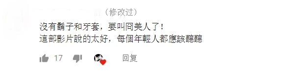 許多網友都被冏星人的故事以及她的真誠所感動,紛紛留言給予正向回應,「喜歡冏大的態度與人生觀,真的非常勵志」、「說得太好了,每個年輕人都應該聽聽」,更有許多人歪樓注意到冏星人終於拿下她的招牌鬍子和牙套,的化身一名清新美人,留言「看了30秒一直覺得怪怪的,原來沒有帶鬍子」、「本體(鬍子)消失後剩下的東西很漂亮」、「沒有鬍子和牙套,要叫冏美人了!」