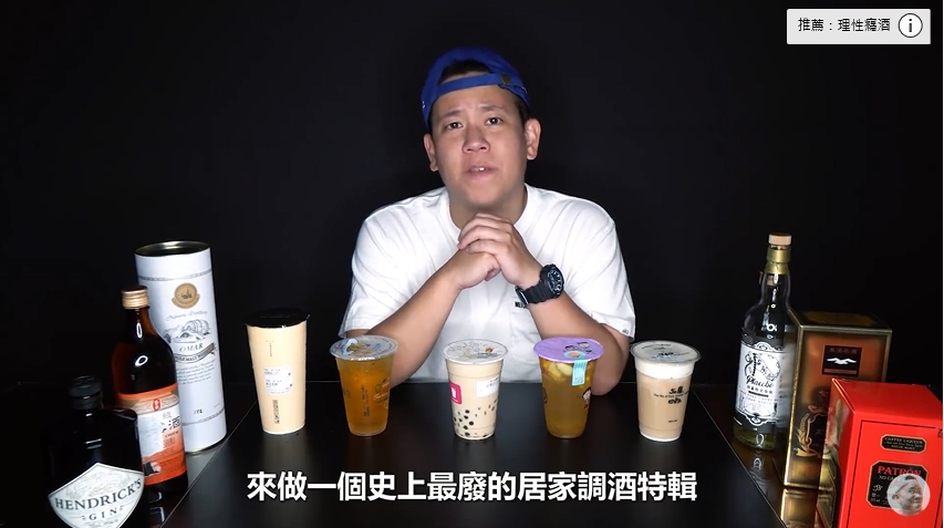 首先恩熙俊去買了五種熱門的手搖杯飲料,分別是50嵐的冰淇淋紅茶、清新的原鄉四季、茶湯會的鐵觀音拿鐵、一芳的水果茶及Come buy的珍珠奶茶,全部選擇正常甜去冰以確保濃度足夠中和酒味。接著他便講解自己選擇搭配的酒種,邊調邊解釋為什麼這樣搭。