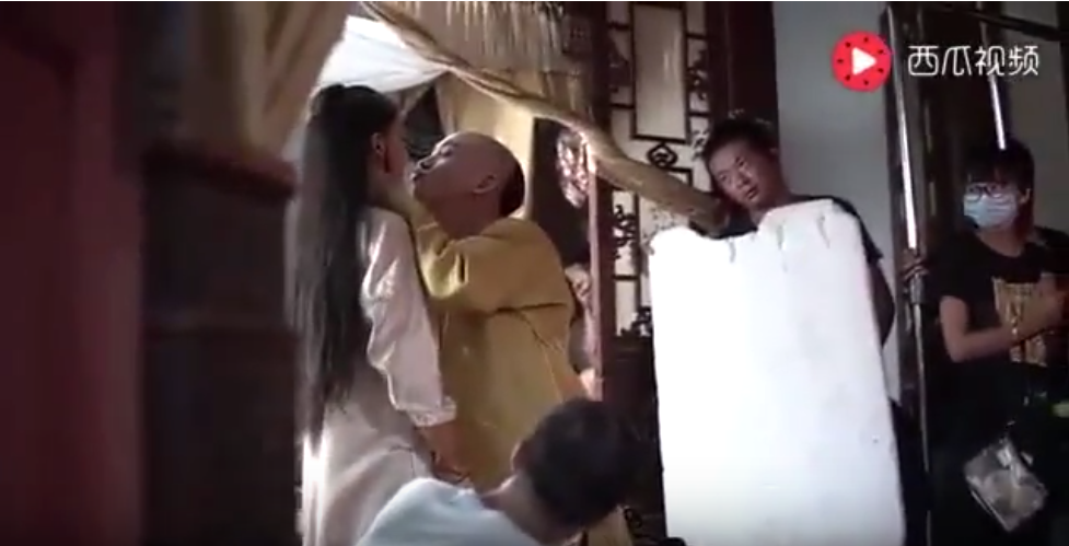 在幕後花絮中,「魏瓔珞」成為皇上妃子後與皇上有大量的感情戲,她必須要會向皇上「撒嬌」,可是在這方面她並沒有經驗,演起來也總覺得不盡人意。有一幕是「魏瓔珞」為了留住皇帝,兩人在床前拉扯,根據劇中的情節,飾演「魏瓔珞」的吳謹言必須要拉住皇上再捧住雙頰來個深情一吻。這時影片中就可以看到吳謹言演出這段的時候,抓不太到節奏,這時,皇帝就出馬了,整個人蹲了下去,還嘟起了嘴抬頭望向吳謹言,突如其來的捧住了吳謹言的小臉,親自向他示範妃子如何向皇帝「撒嬌」!
