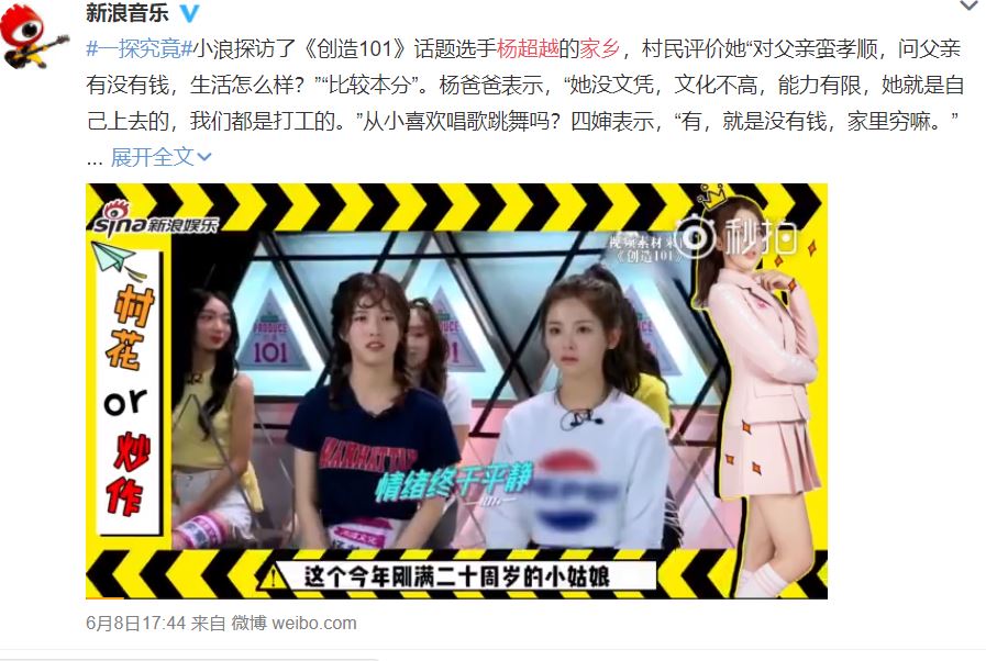 此前,在火箭少女成團影片中,楊超越曾透露自己離開偏遠農村獨自前往城市追夢,因為她從小就認為自己並不平凡。錄製節目時,楊超越也曾自稱是「全村的希望」,雖然最後哭著承認其實村裡都沒有人知道她參加選秀節目,不過在陸媒探訪她的家鄉時,村民各個對她讚譽有加,更以她為傲,儼然已成為貨真價實的「全村希望」。