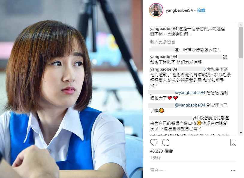 楊寶貝同天也發文打上:「這是一個學習做人的過程 ,對不起,也謝謝你們」,不僅再次道歉,也虛心接受網友們的責難,眼下肯肯都出面表示事情已經過了,也希望此事能夠早點落幕。